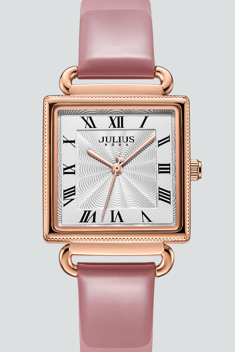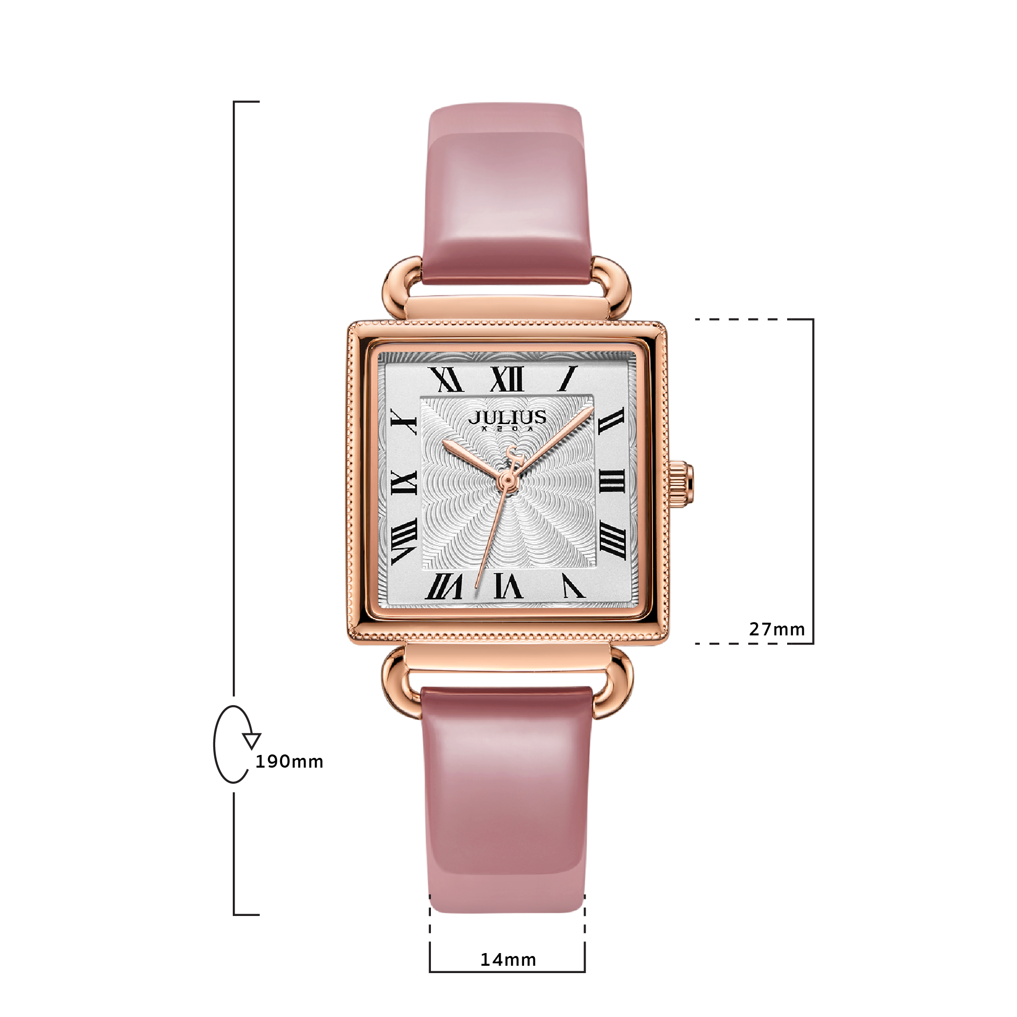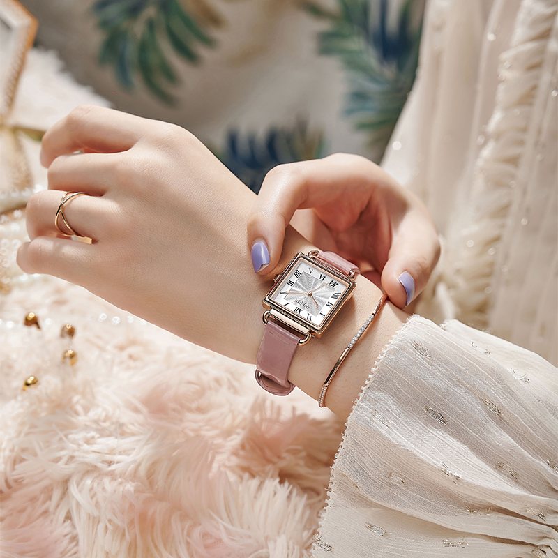 นาฬิกาข้อมือผู้หญิง JULIUS JA-1266 A สไตล์สาวชิค สุดเก๋ หน้าปัดเหลี่ยมสีขาว สายหนังสีชมพู แบรนด์เกาหลีแท้ 100%