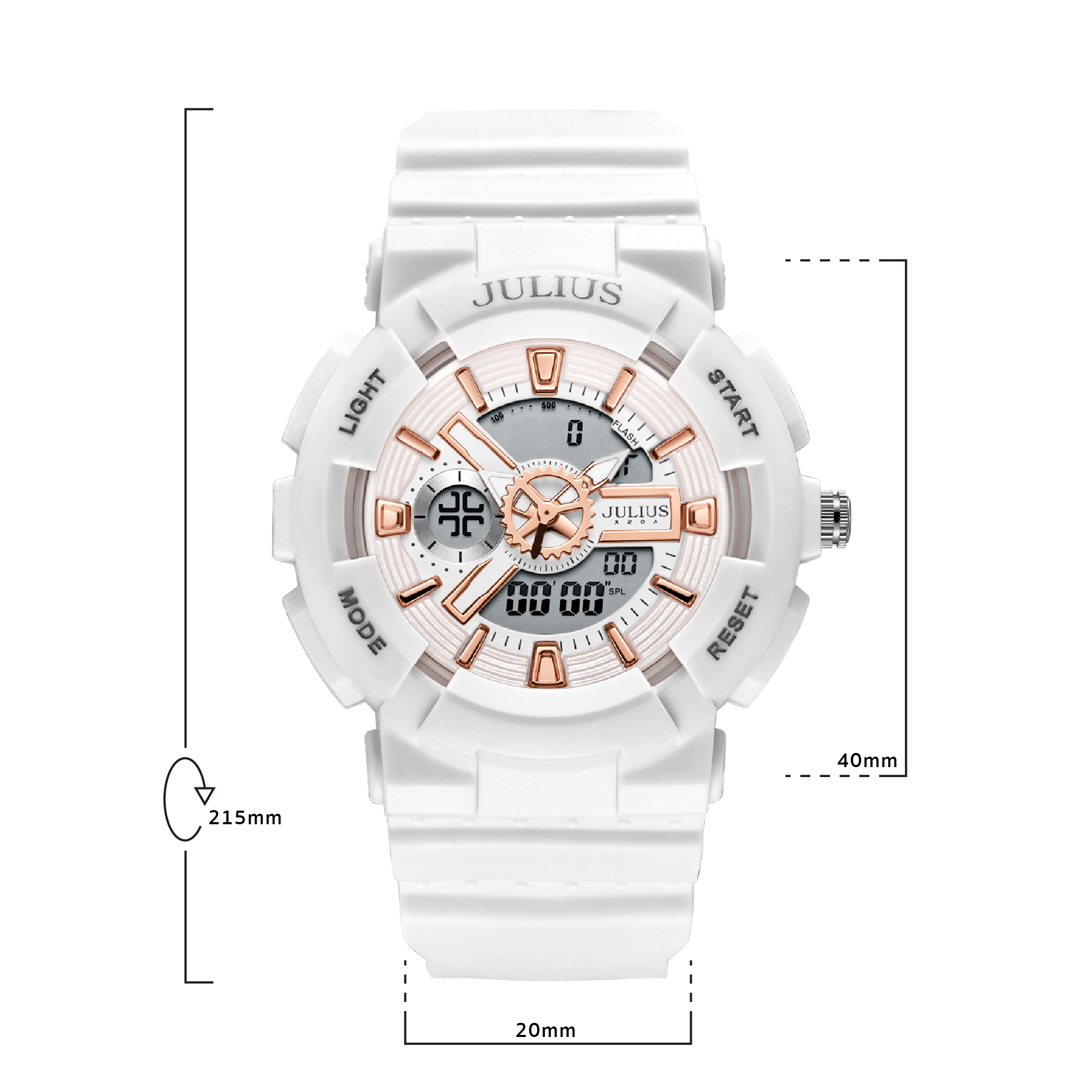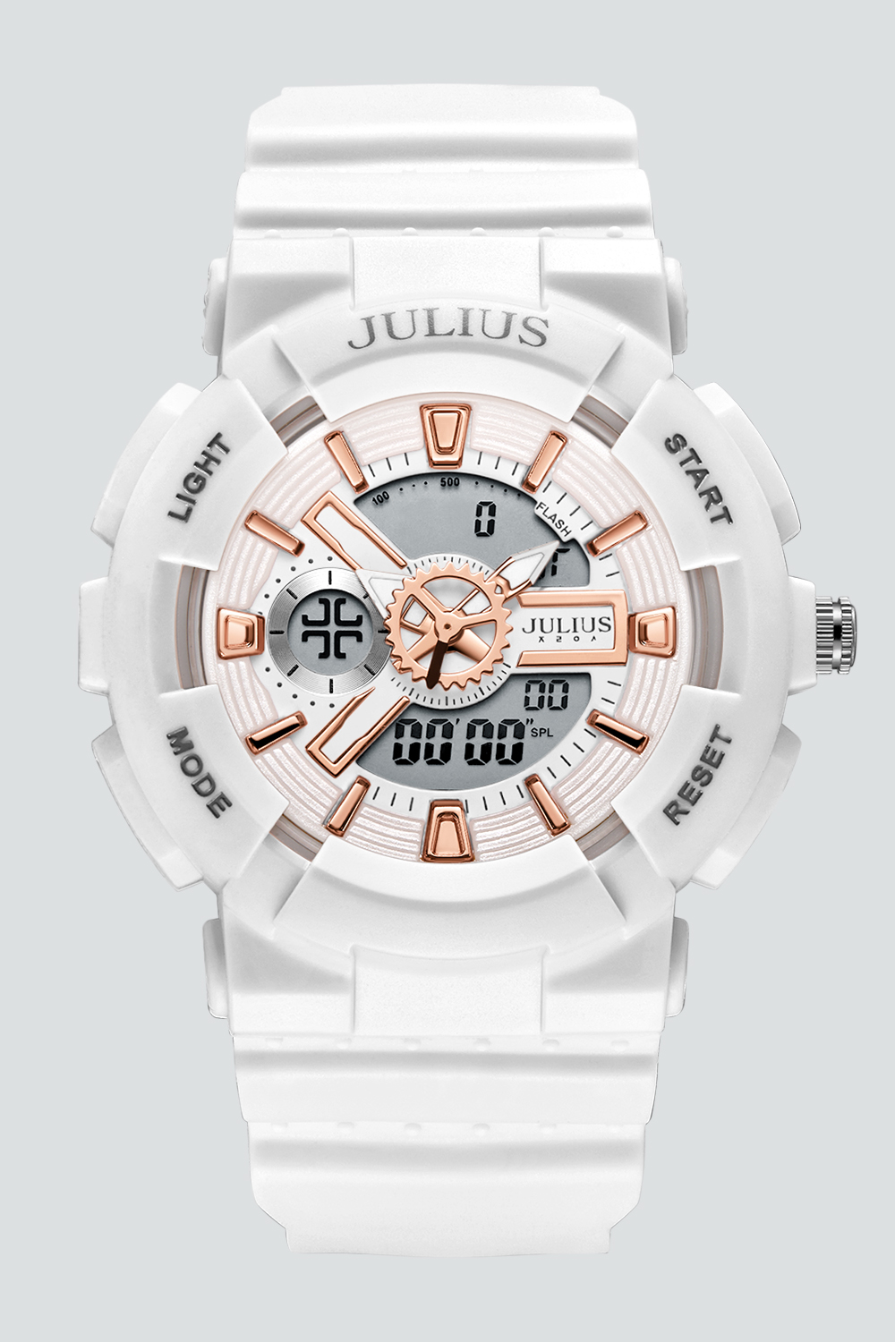 JULIUS นาฬิกาข้อมือผู้หญิง รุ่น JA-1276A ดิจิตอล หน้าปัดกลมสีโรสโกลด์ สายซิลิโคน สีขาว แบรนด์เกาหลีแท้ 100%