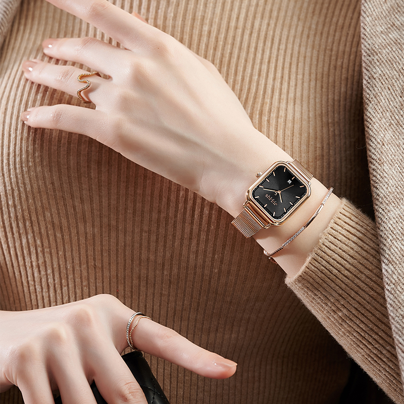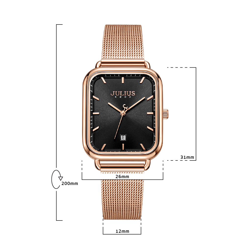 นาฬิกาข้อมือผู้หญิง JULIUS JA-1294 D สไตล์สาวชิค สุดเก๋ หน้าปัดเหลี่ยมสีดำ สายสแตนเลสแบบคลิปล็อคสีโรสโกลด์ แบรนด์เกาหลีแท้ 100%