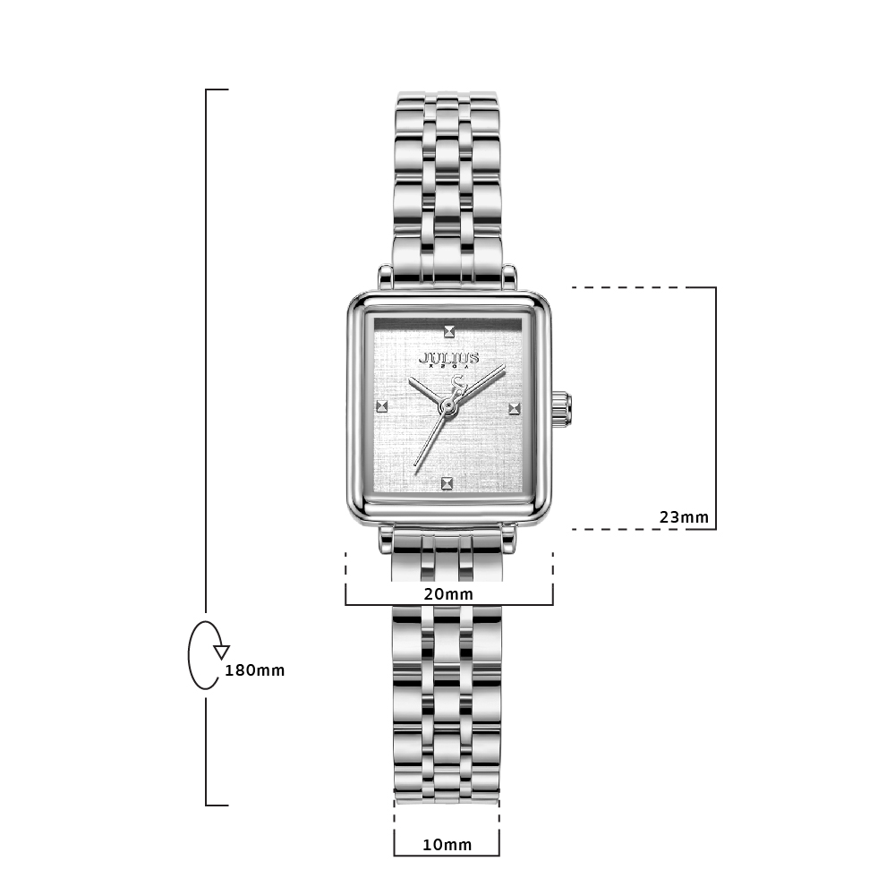 นาฬิกาข้อมือผู้หญิง JULIUS JA-1315 A สไตล์สาวชิค สุดเก๋ หน้าปัดเหลี่ยมสีเงิน สายสแตนเลสแบบบานพับแบบสวมสีเงิน แบรนด์เกาหลีแท้ 100%