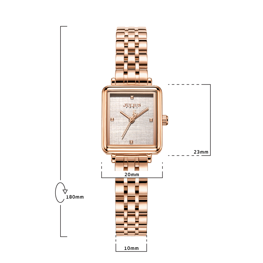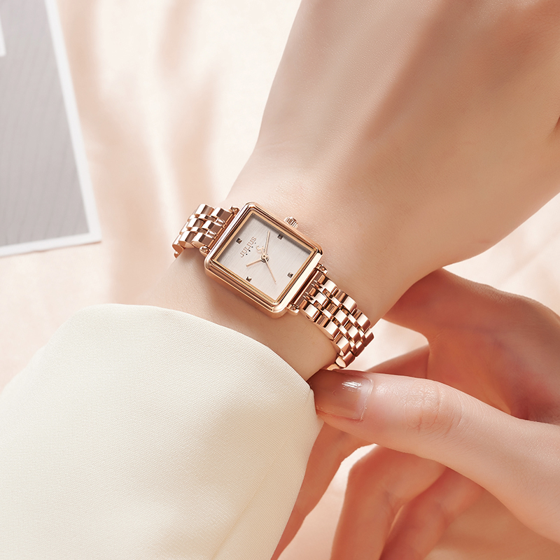 นาฬิกาข้อมือผู้หญิง JULIUS JA-1315 B สไตล์สาวชิค สุดเก๋ หน้าปัดเหลี่ยมสีโรสโกลด์ สายสแตนเลสแบบบานพับแบบสวมสีโรสโกลด์ แบรนด์เกาหลีแท้ 100%