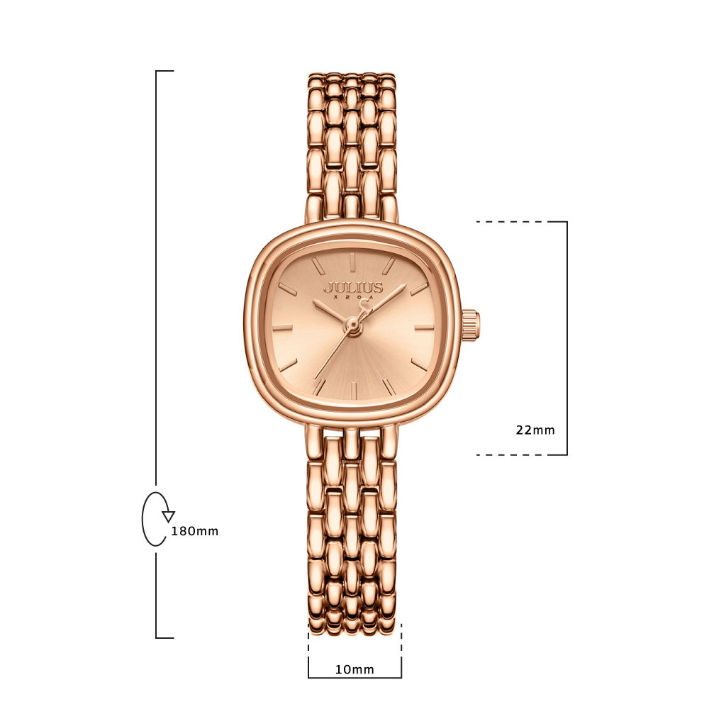 นาฬิกาข้อมือผู้หญิง JULIUS JA-1332 A หน้าปัดเหลี่ยมสีพิงค์โกลด์ สายสแตนเลสสีพิงค์โกลด์ แบรนด์เกาหลีแท้ 100%