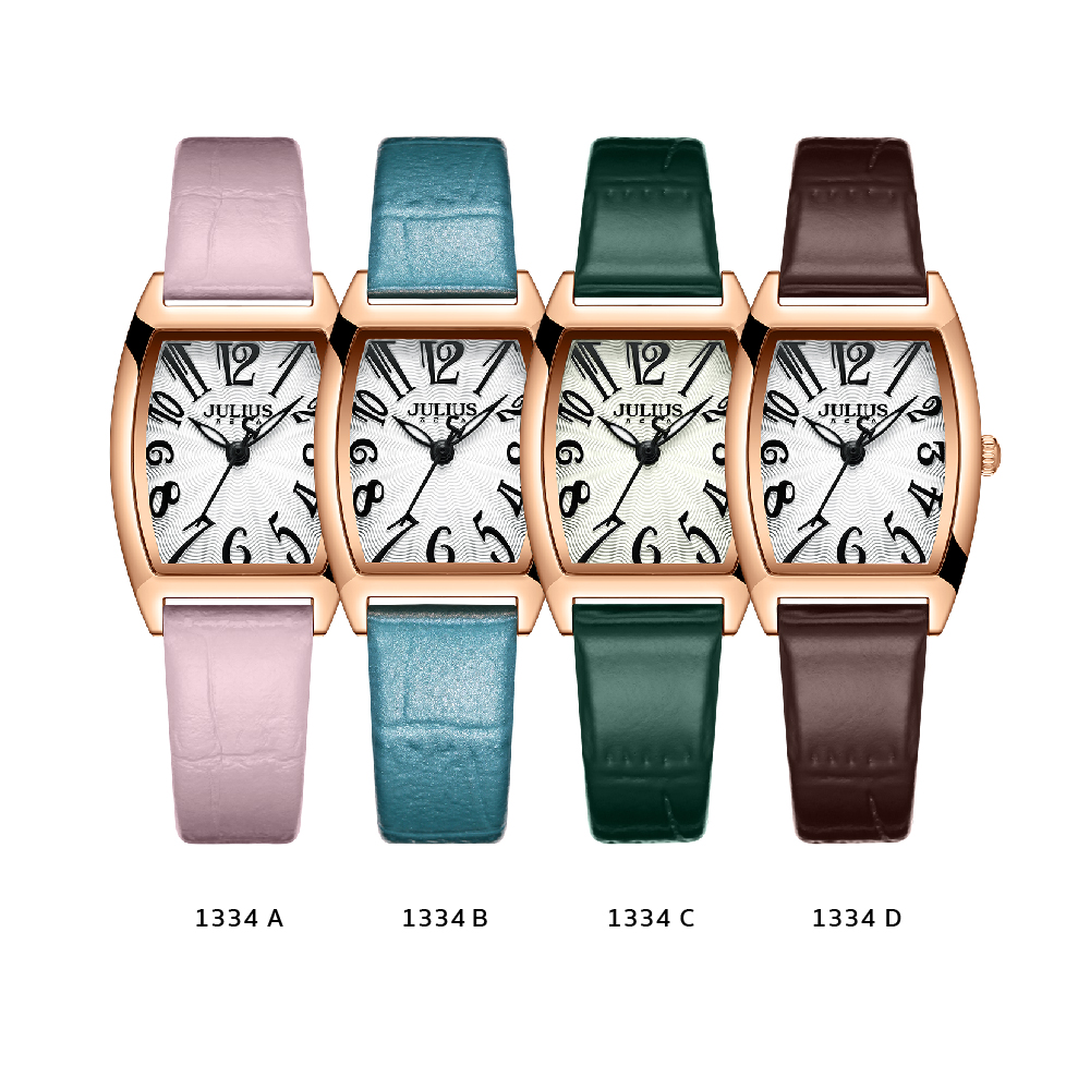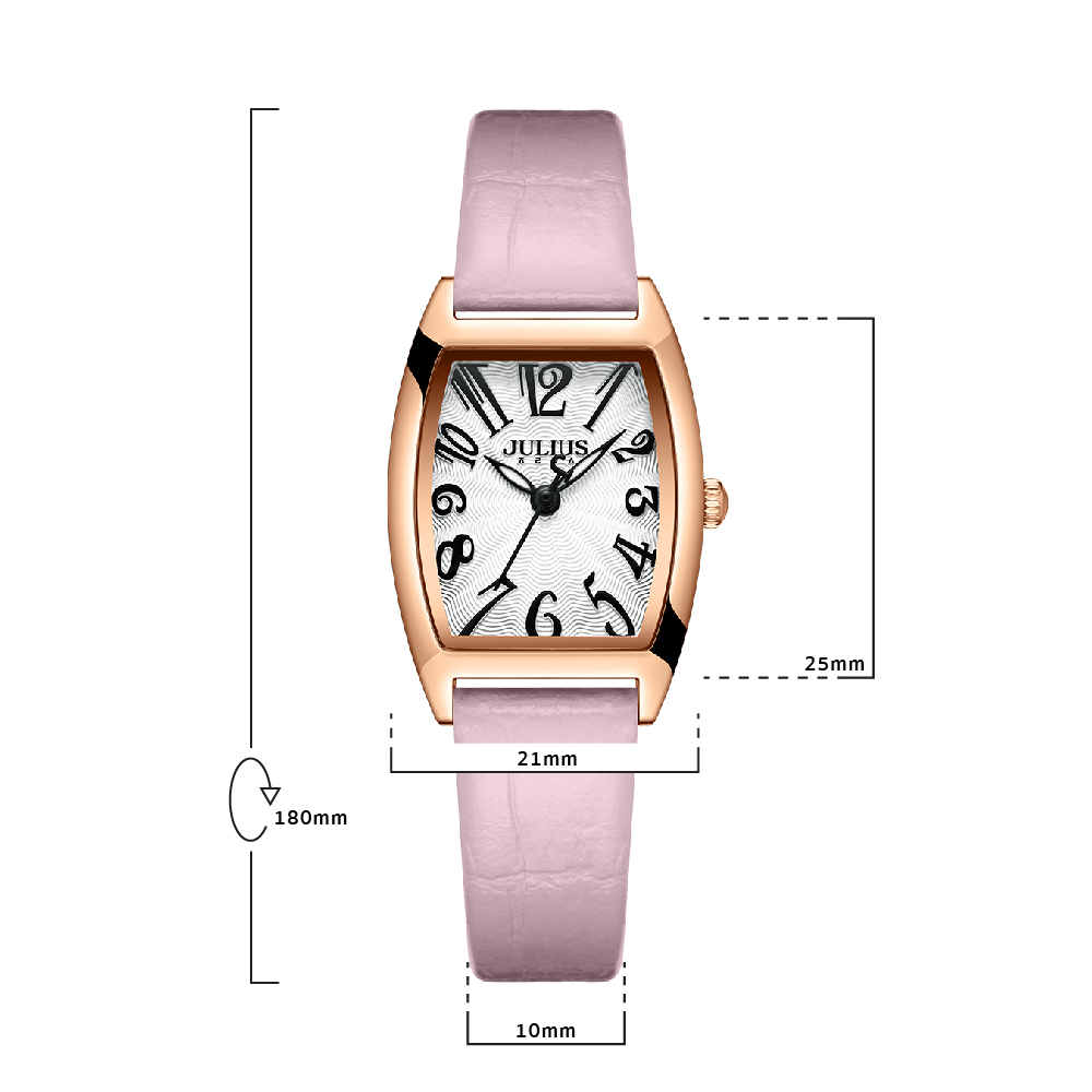 นาฬิกาข้อมือผู้หญิง JULIUS JA-1334 A สไตล์สาวชิค สุดเก๋ หน้าปัดเหลี่ยมสีขาว สายหนังสีชมพู แบรนด์เกาหลีแท้ 100%