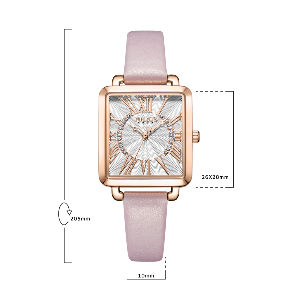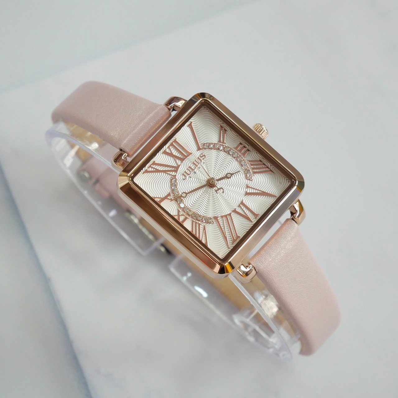 นาฬิกาข้อมือผู้หญิง JULIUS JA-1340 A หน้าปัดเหลี่ยมสีขาว สายหนังสีชมพู แบรนด์เกาหลีแท้ 100%