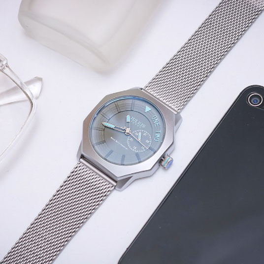 นาฬิกาข้อมือผู้ชาย JULIUS JAH-126 A สไตล์สปอร์ตแมน หน้าปัดกลมสีเทา สายคลิปล็อคสีเงิน แบรนด์เกาหลีแท้ 100%