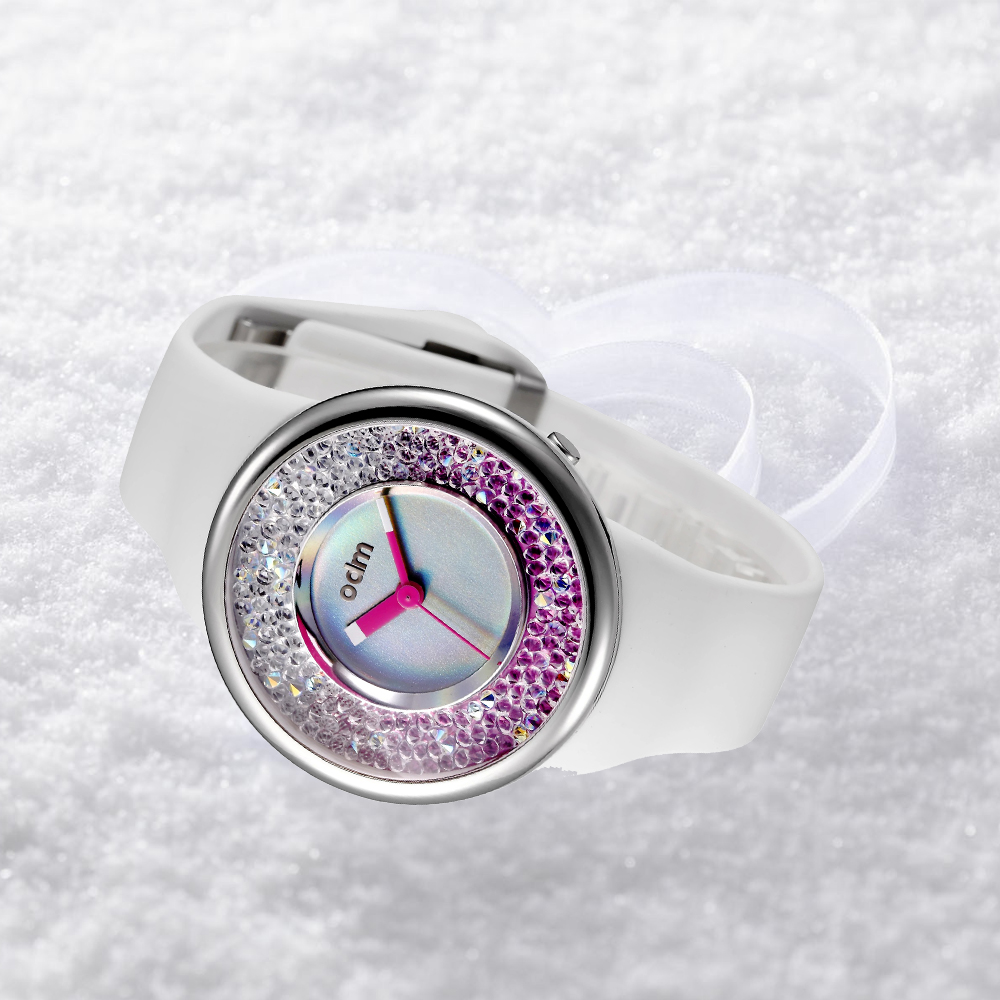 นาฬิกาข้อมือแบรนด์แท้ Odm กับ Hologram collection มุ่งเน้นไปที่บนหน้าปัดซึ่งเต็มไปด้วยคริสตรัลสวารอฟกี้ Swarovski และล้อมรอบกับแหวนสแตนเลสเงาทวีสะท้อนของผลึกคริสตัลดูโดดเด่นสดใสเหมือนดวงดาวหน้าปัดดีไซน์เก๋ตกแต่งด้วยคริสตรัลสวารอฟกี้แท้